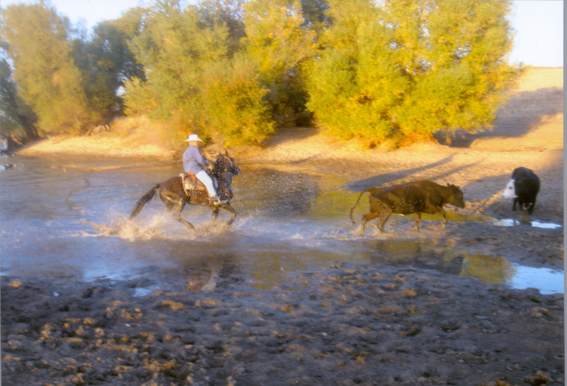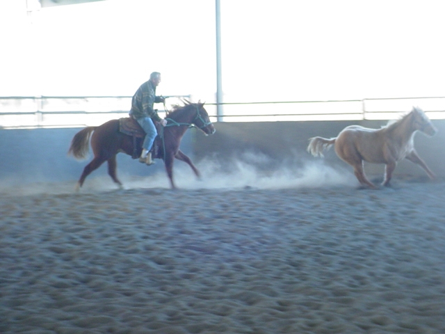 Rick starting a young stallion (still a littly bucky) while chasing Buddy when he was a youngster